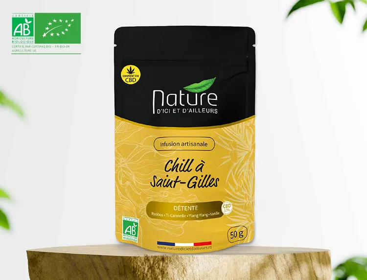 Laissez-vous envelopper par la douceur d’une infusion bio enrichie en CBD. Relaxation et bien-être se mêlent pour apaiser corps et esprit.