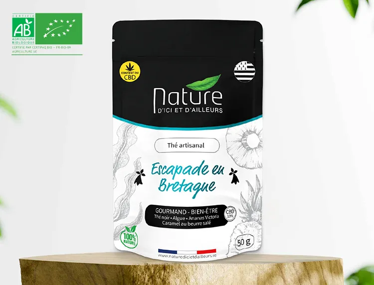 Un voyage sensoriel entre Bretagne et La Réunion. Une infusion gourmande et relaxante, relevée d’une touche de CBD pour un apaisement tout en douceur.
